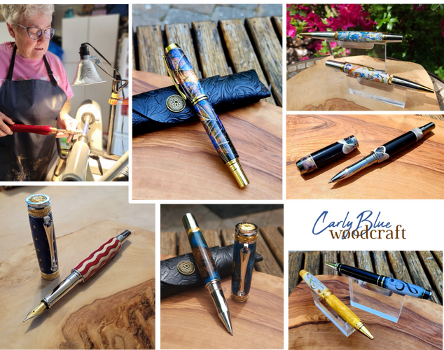 Carolyn Hogan's interest in woodworking started after taking a class while in the Navy. A kaleidoscope workshop introduced her to the fun and challenge of turning objects on a lathe. Now retired from the electrical trade, she spends her time making beautiful and unique pens.